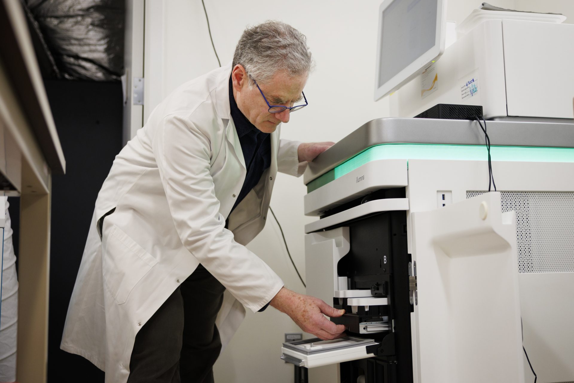 Eric Pierce using a NovaSeq 6000 machine in the lab.